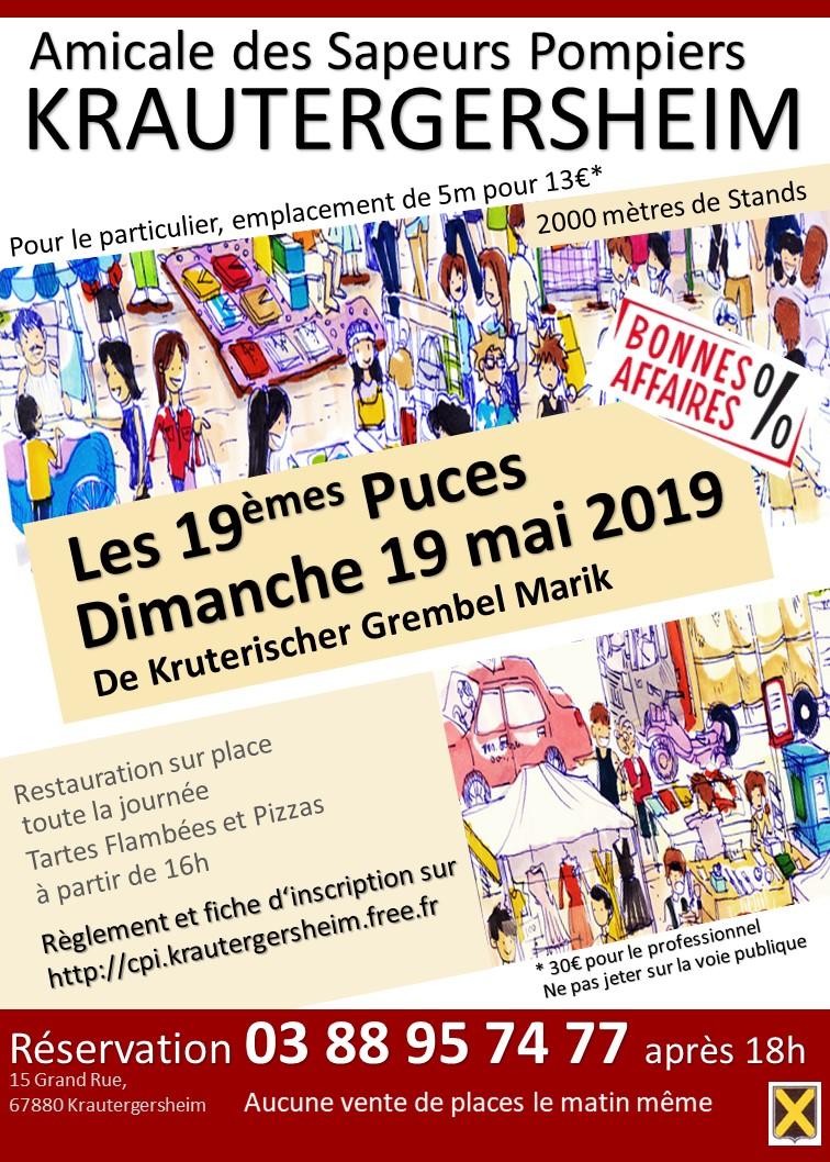 Le dimanche 19 mai 2019, l’Amicale des Sapeurs Pompiers de Krautergersheim organise leur 19ème marché aux puces. Pour plus de renseignements : MARCHE AUX PUCES