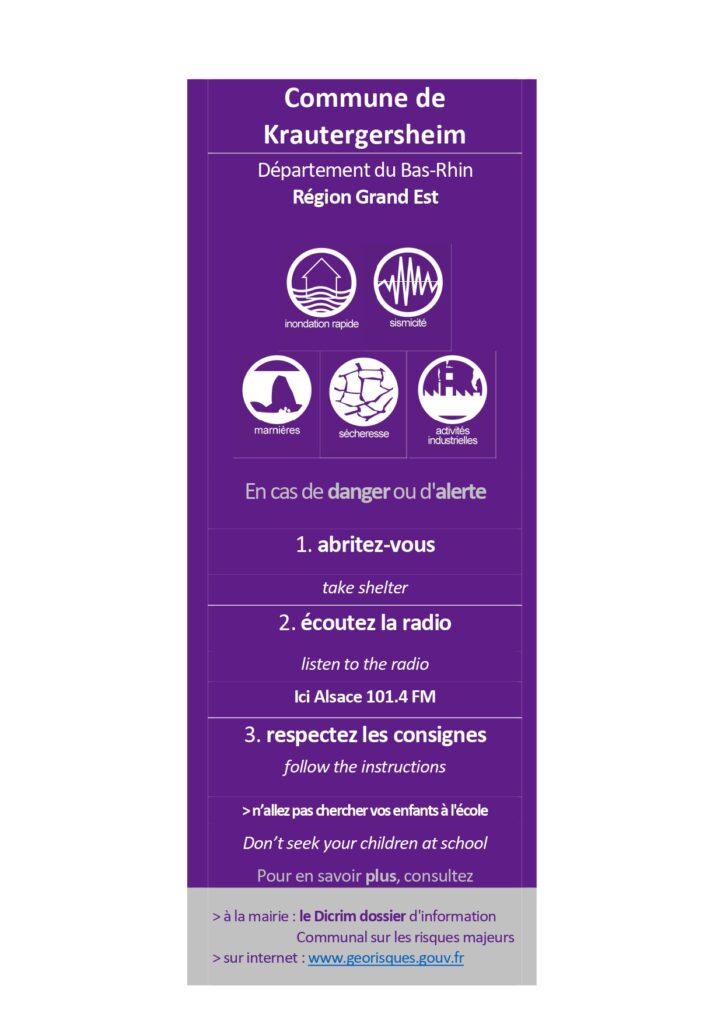 Les risques majeurs qui concernent notre Commune sont présentés et répertoriés dans le DICRIM. Ce document a pour but d'informer la population. Il est consultable en mairie ou en ligne, en cliquant sur le lien ci-dessous.